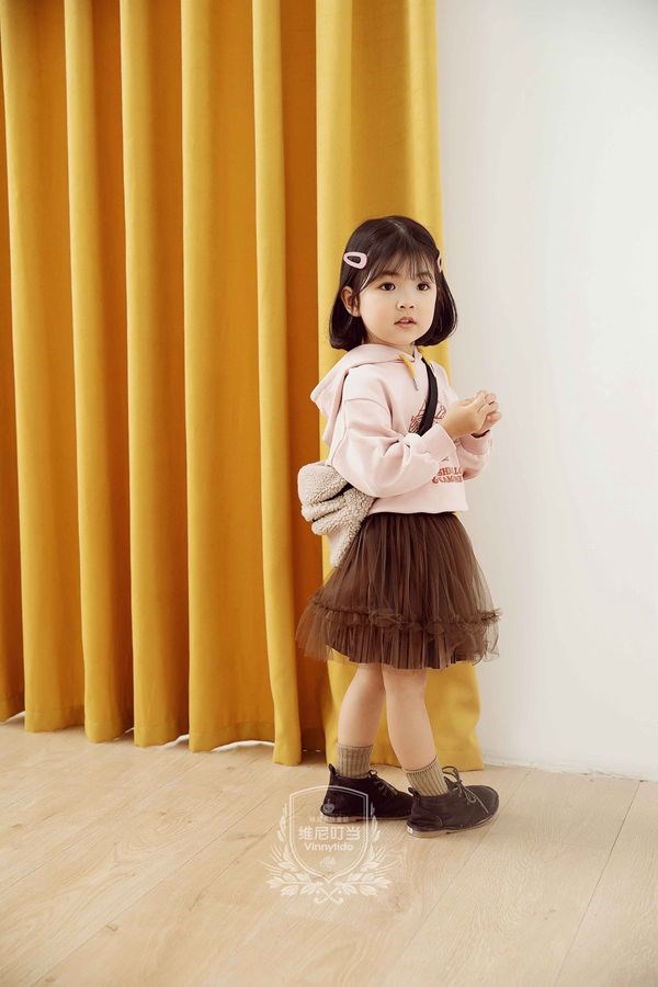 小公主永远喜欢的粉红色,在2020年也要燥起来,看维尼叮当童装家这款卫衣,连帽的设计增加了保暖度,胸前的印花设计时尚感十足配上一条深色蛋糕裙,时尚感满满的同时充满了个性。