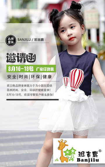 8月16日--18日,班吉鹿厂家订货会正式开启,欢迎意向客户报名参加现场考察!班吉鹿品牌童装致力于为小朋友提供各类时尚、安全、环保的健康童装,做品牌我们是认真的!