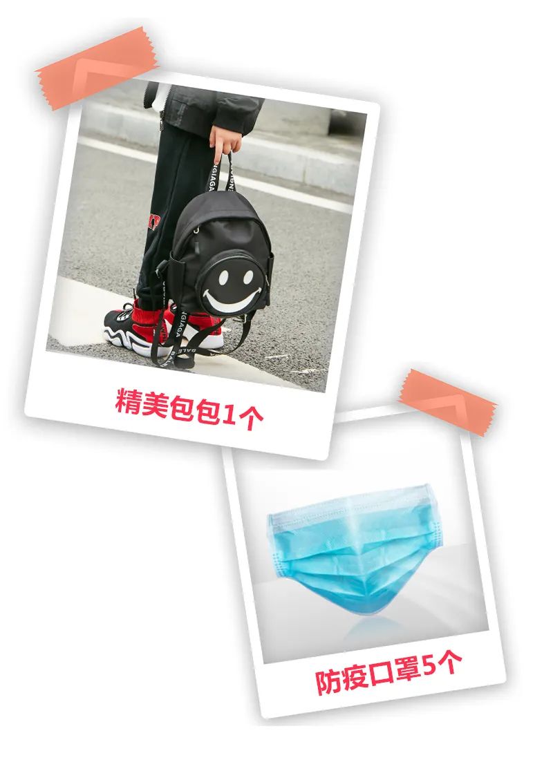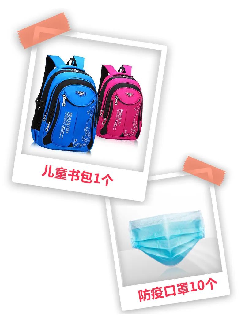 即可获赠儿童书包1个+防疫口罩10个