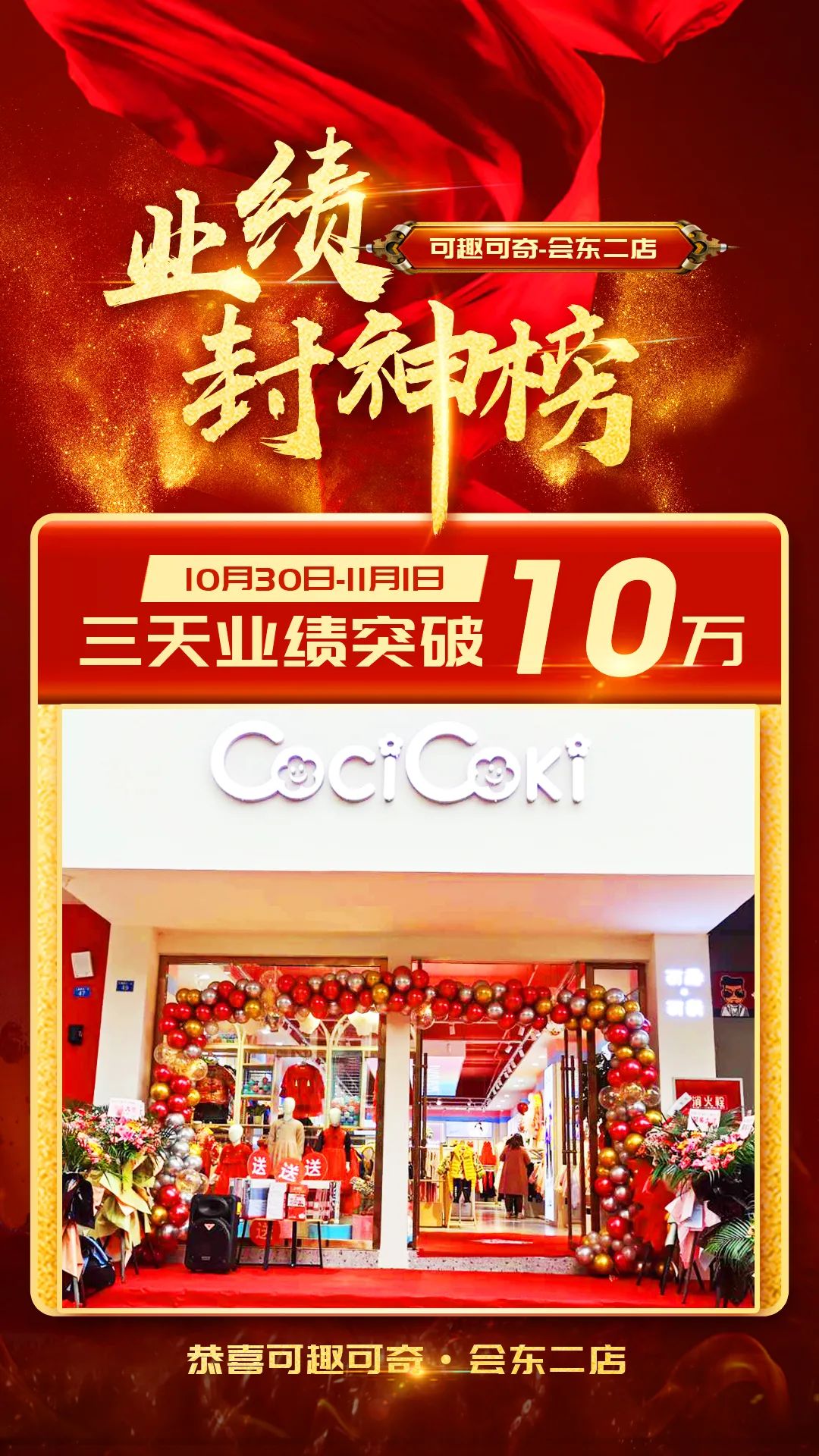 喜报|祝贺可趣可奇四川会东店三天业绩突破10万!