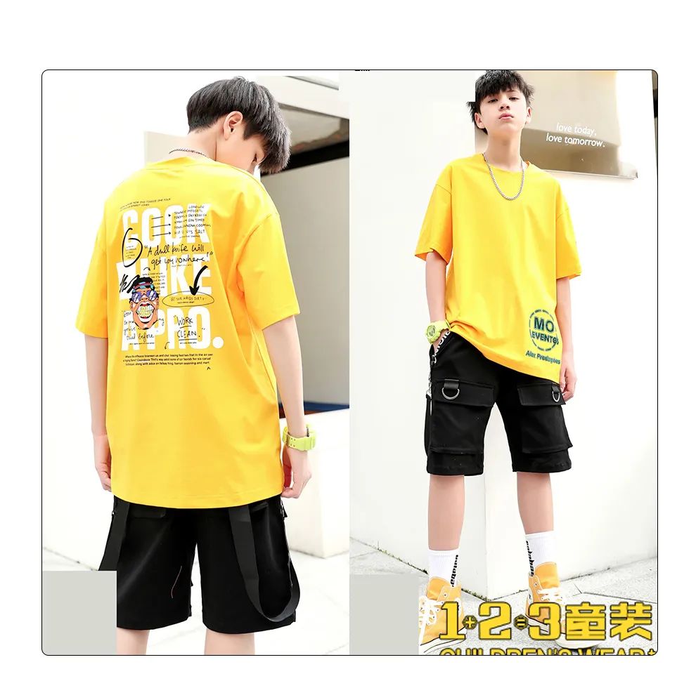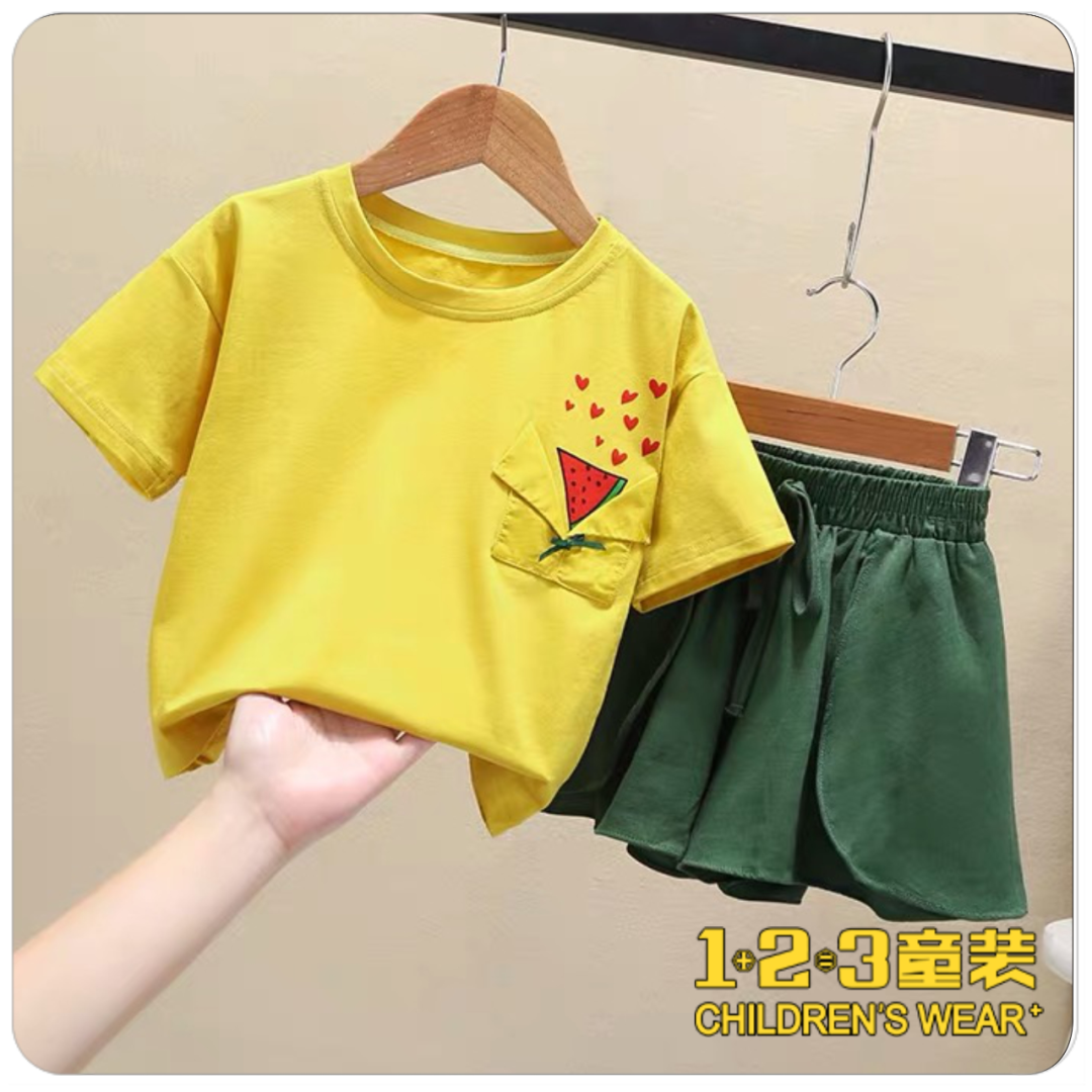 黄色短T+绿色的短裤/短裙