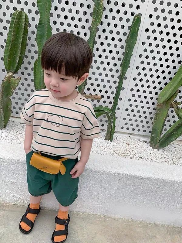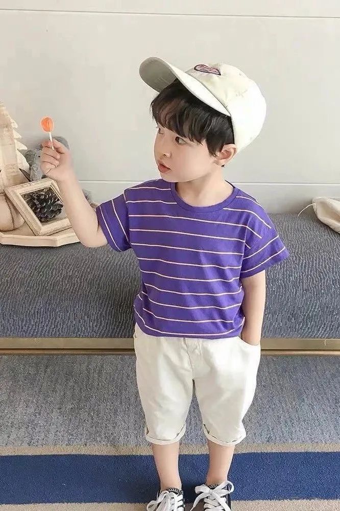 男宝上衣则考虑格纹元素T恤,条纹的撞色设计,时尚百搭,更是能够显高显廋,抢眼的金色花边,彰显娃儿的帅气范。