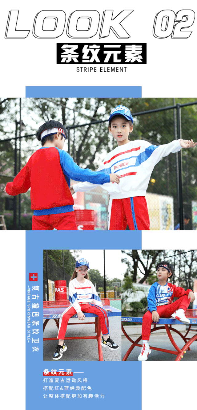 复古运动风回潮怀旧美感,加上阳光运动风极简设计,还原孩子本质单纯,勾勒出跨时代的时髦新魅力。