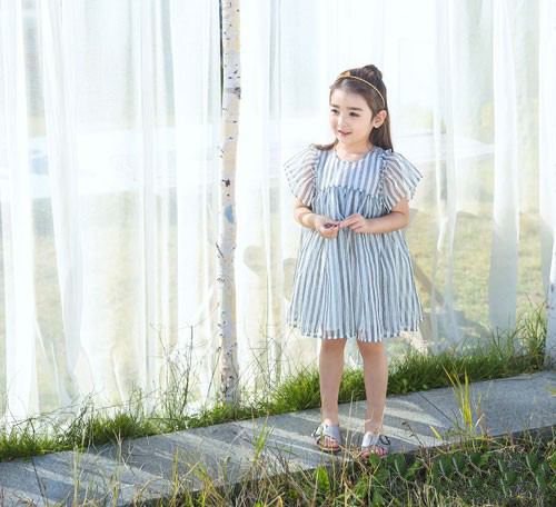 安米莉童装这件蓝白相间的条纹连衣裙,时尚的风格与自然风光相互映衬,皱褶廓摆设计更加舒适自由,让时尚萌宝也能感受田园生活的美好。