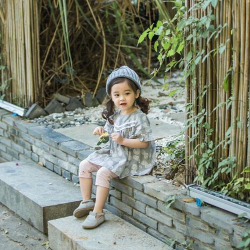 柔软舒适的廓版款式搭配接近自然的色调,这件棉质的素色印花上衣展现着小萝莉自然清新,搭配一条粉色的休闲裤,恬静的夏日田园风格完美展现。