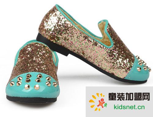 比比我童鞋个性潮款,韩版铆钉土豪金皮鞋,闪亮一季,穿出不一样的优雅与时尚。珠光亮皮帮面,引人目光,掀起土豪黄金热。鞋尖铆钉装饰,个性潮流,完美演绎时尚。