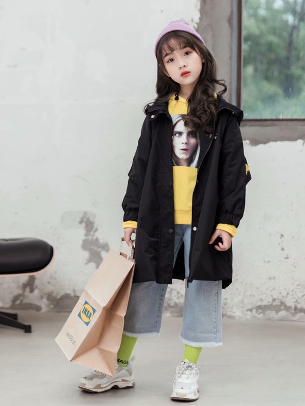 这款黑色的外套是不是很好看,中长款的版型穿在身上很是好看,内搭一件黄色卫衣,时尚图案的设计使这款上衣看起来很是时髦,版型穿在身上很是温暖也很合身,下身搭配一件牛仔裤子,阔腿裤的搭配很是帅气哦,搭配一双运动鞋,整体的造型很是休闲有很时髦,而且黑色外套很是白搭哦,不挑人不挑肤色哦。