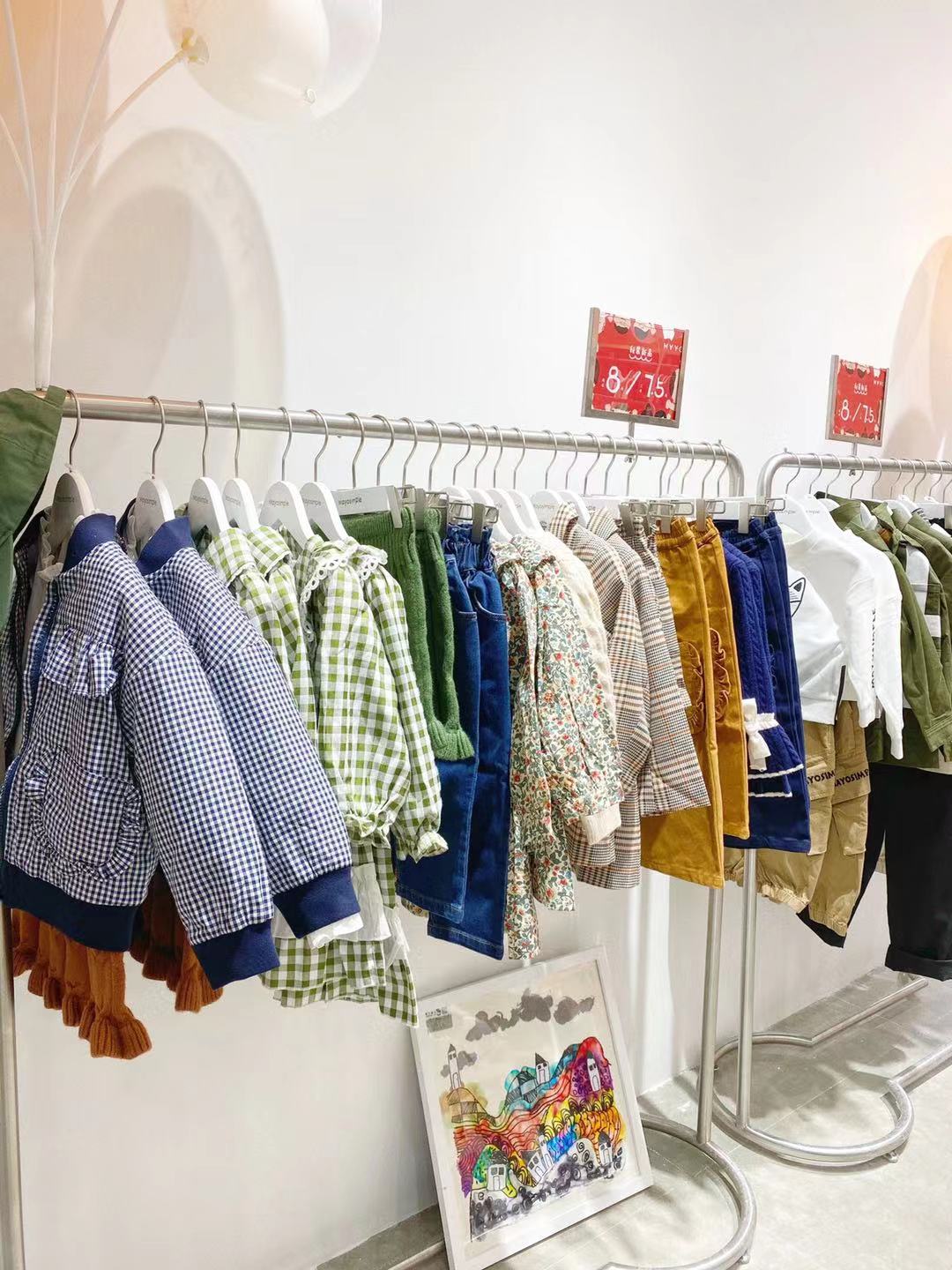 明亮的品牌形象店,五月童品MAYOSIMPLE东莞市虎门天虹百货新店内部陈列有序的空间,一目了然的摆放陈列,搭配高级的配色,除了满足宝妈宝爸的日常需要外,同时也希望给每一位到店的客人带来由内而外的治愈与放松。