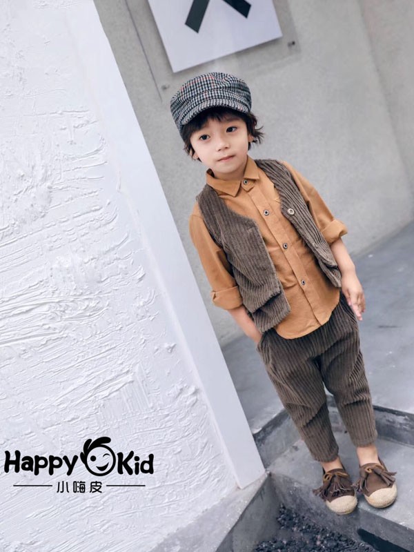 灯芯绒马甲向来都是非常经典的款式,这款咖啡色的灯芯绒马甲,自带复古的气质,很适合小男孩穿着,搭配上上同款的咖啡色灯芯绒长裤,内搭一件大地色的衬衫,整体不论是色调还是搭配都很有复古帅气的味道,这样的穿搭来上一顶画家帽,特别像是民国时期的小帅哥哦,喜欢的可以为孩子试试呢。