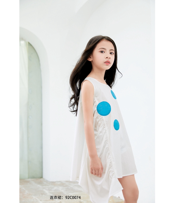 纯白色的连衣裙或许也是一个不错的选择。小鬼当家这一件连衣裙采用宽松的下摆设计让穿搭更加透气清爽,搭配上波点的和侧边褶皱的设计更是让你的宝贝在穿搭上独具一格。