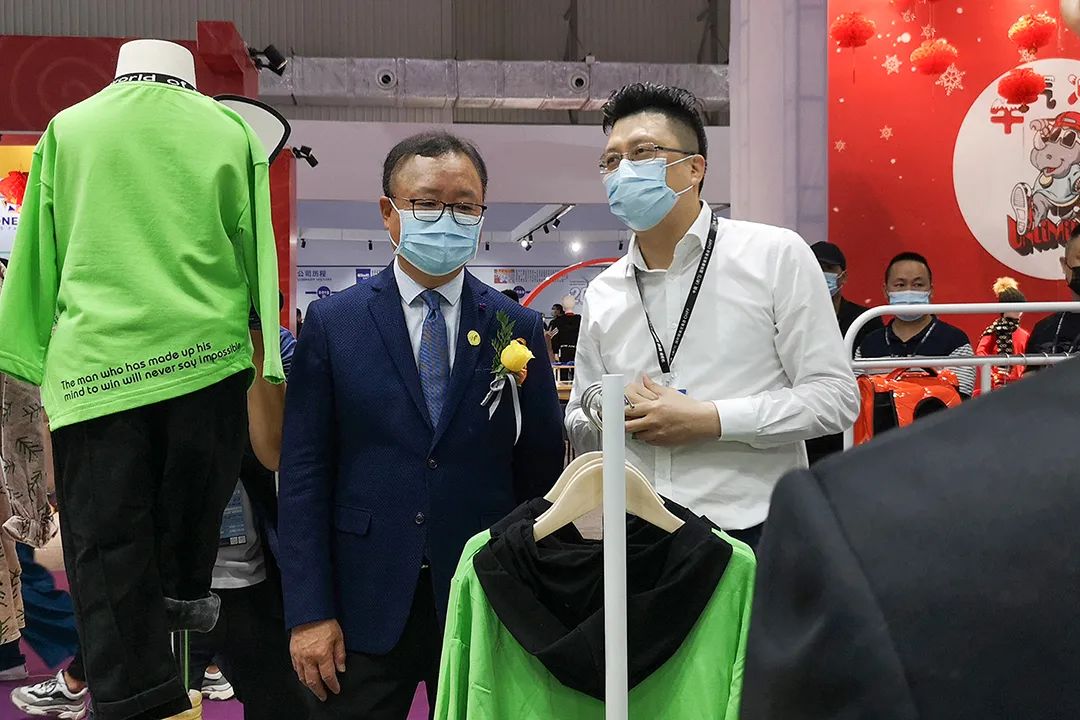 本次展会吸引了社会各界高度关注,中国纺织工业联合会会长孙瑞哲;虎门镇镇委书记罗斌;虎门镇镇长王耀明等领导亲临巴迪小虎展区参观,孙会长与巴迪小虎创始人蔡兴涌先生进行了深度交流,并对巴迪小虎新国潮发展方向表示高度赞赏,感谢社会各界对巴迪小虎的关注与认可!