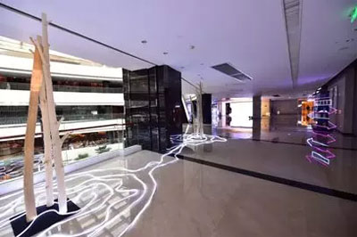 尚的光带年轮布置,简约的棕色树木,梦幻的光影氛围,把人们带进童话般的潮流现场。
