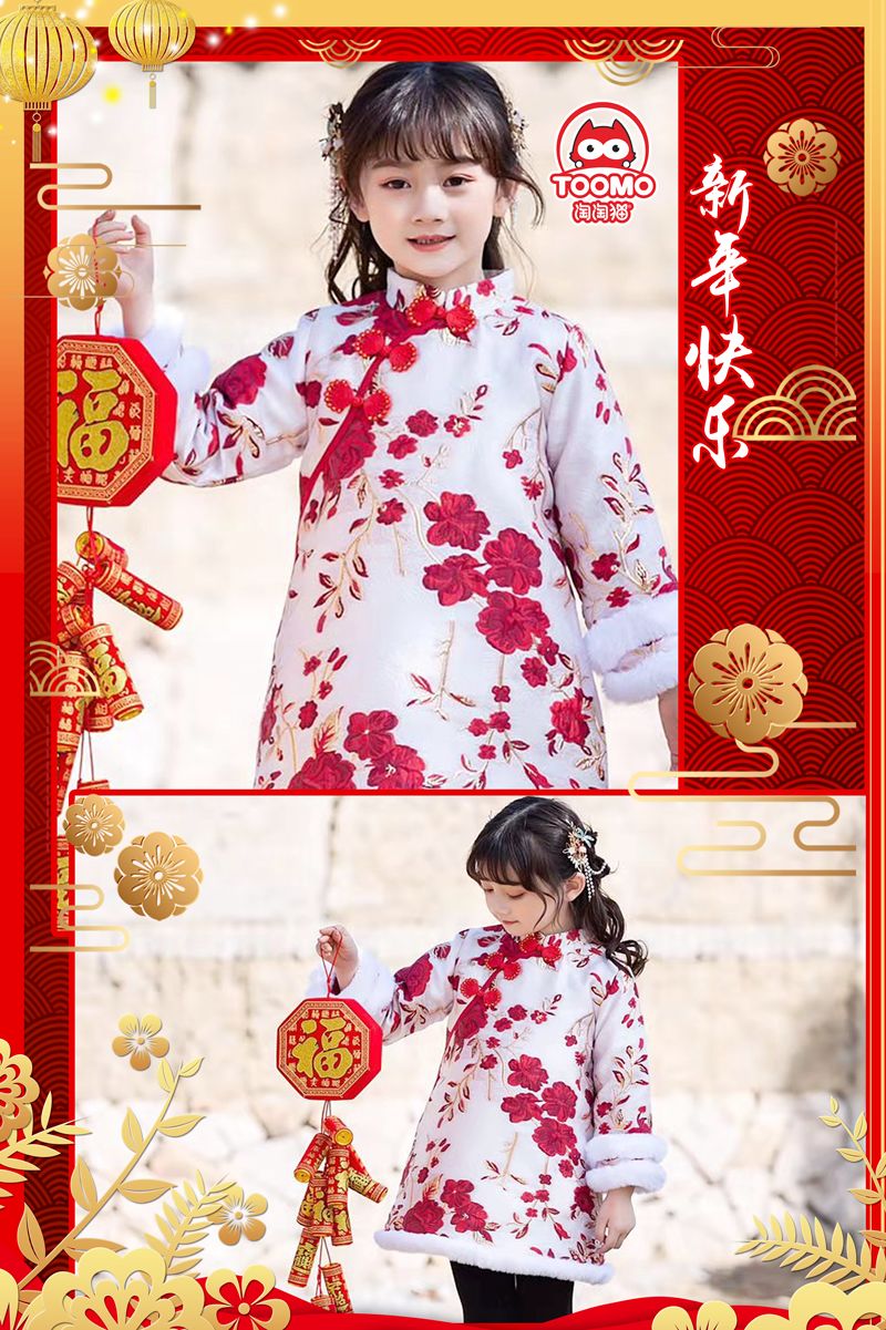 当旗袍遇到孩子的年服,孩子们穿着也有了美人初长成的感觉。