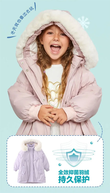 “轻绒绒”活力值UP,0压感,轻盈又修身,童趣满满的糖果色,像彩虹糖一样梦幻迷人,小可爱们怕冷的必备单品。